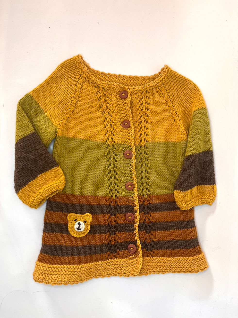 Strikket barnejakke med bamse