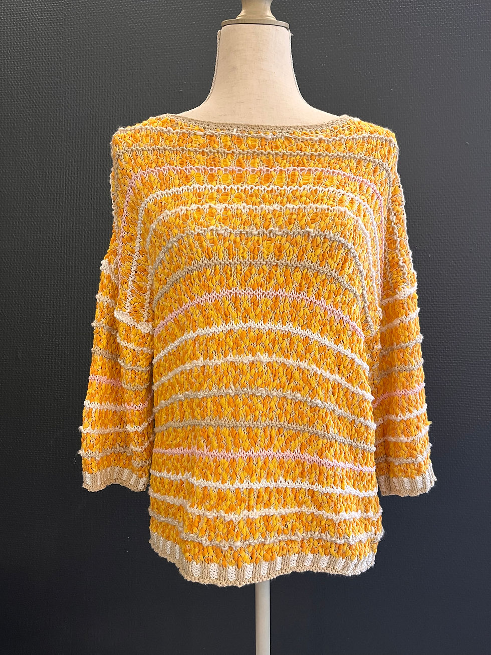 Genser i oransje og beige