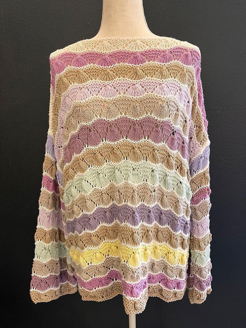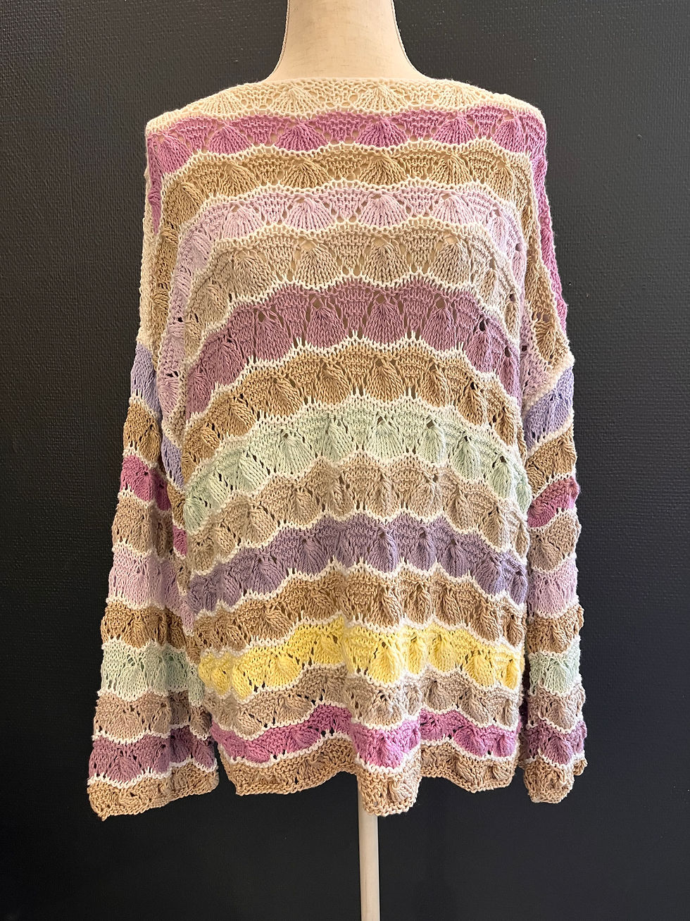 Genser i pastellfarger med skjellmønster