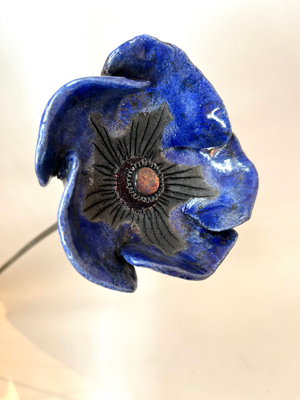 Mørkeblå blomst av rakukeramikk med skimmer 2