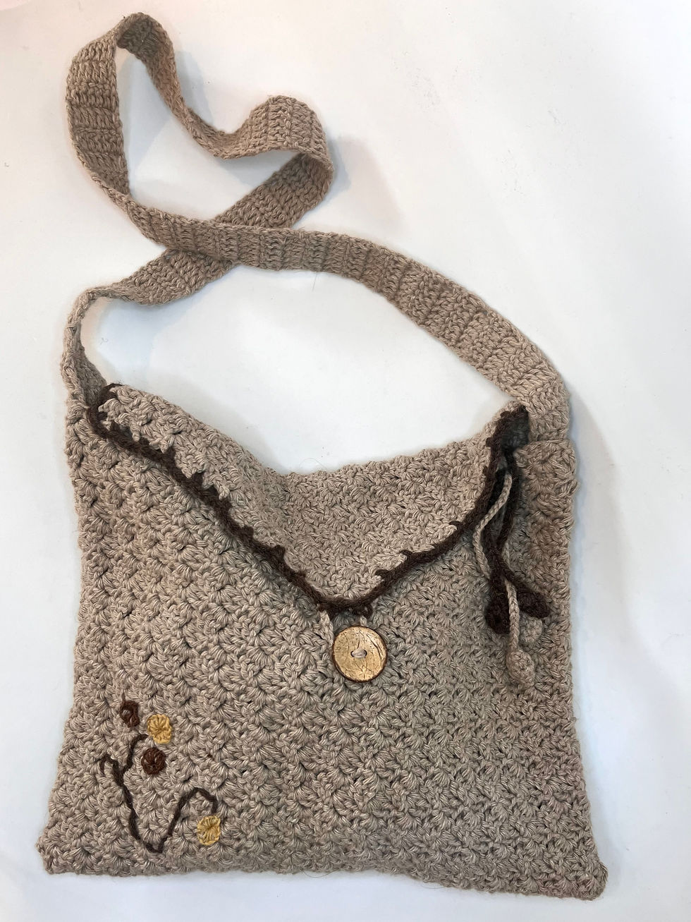 Heklet veske med broderte blomster
